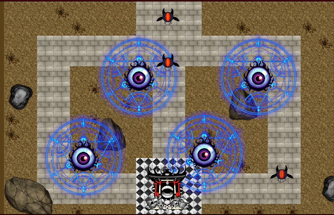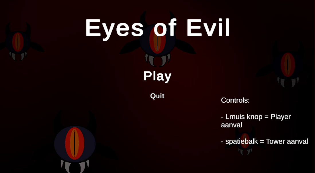 Eyes of evil is a simple tower defense game with the premise being that you have full control over the towers instead of them firing by themselves. you choose when the towers attack and you can also help your towers out by using an attack that is centered around your mouse button. this project was made for an assignment and as practice for my c# skills.
